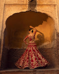 Description: Crafted on a luxurious red canvas of fine spun raw silk, Arusa manifests timeless luxury. The lustrous lehnga set is adorned with floral bouquets set within delicately ornate arches gleaned from iconic Mughal inlay art. Patterns of brimming floral vases are wrought by master craftsmen using hand techniques like zardosi, kora and dabka. Paired with a delicately hand crafted dupatta, Arusa is symphony of grace and opulence.
