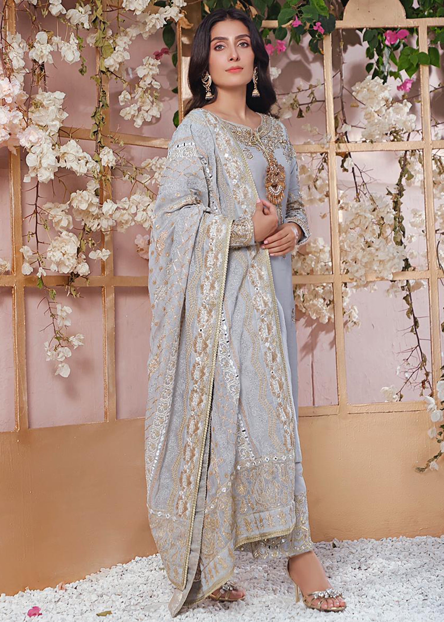 Indulge in the epitome of elegance with Zyra, an exquisite long Korean silk shirt in a rich, luxurious bottle green tone. This opulent piece is a celebration of timeless beauty, featuring intricate embroidered borders and a neckline that enhances its sophisticated design. The meticulous craftsmanship is showcased through fine embellishments that adorn the entire border of the shirt, creating a stunning visual effect. To elevate the ensemble even further, Zyra is paired with a fully embroidered organza dupatta, adding a touch of glamour and completing the look with grace and finesse.