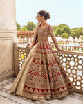 Description: A fascinating fusion of luxurious artworks, Juri is a timeless silhouette richly adorned with scintillating works like zari, sequins and zardozi. The pishwas features decorative arabesques filled with bejewelled dabbi jaal while its bodice is laden with intricate booti of tilla, dabka, sequins and crystals. This open-cut silhouette is impeccably crafted in organza and paired with a fully bedecked dupatta making it a modern heirloom.